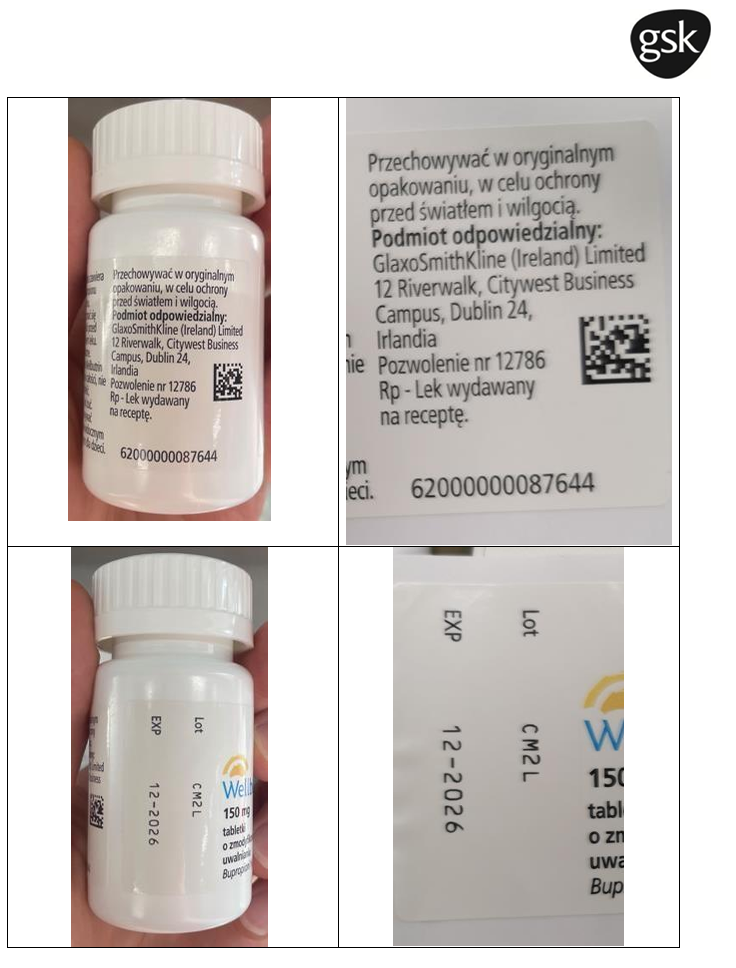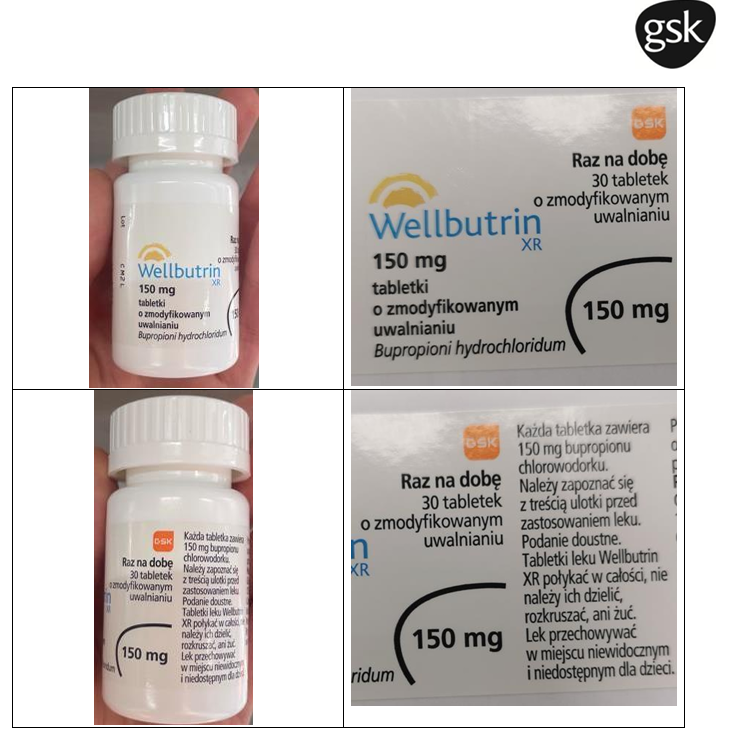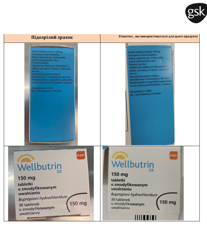 – WELLBUTRIN XR, 150mg, 30 tabletek o zmodyfikowanym uwalnianiu, серії СМ2L, виробництва Glaxo Wellcome S.A., Іспанія, з маркуванням польською мовою для ринку Польщі (термін придатності 12-2026) (фото додається).