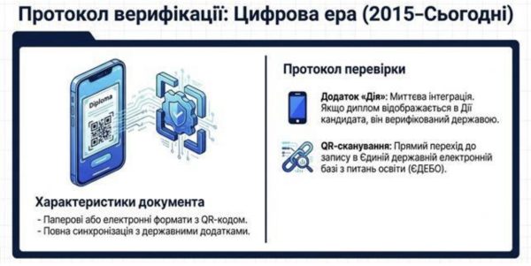 - верифікація дипломів: документи, видані після 2000 року, можна перевірити через Єдину державну електронну базу з питань освіти (ЄДЕБО) або додаток «Дія»;