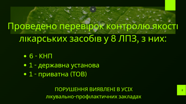 Окремо акцентувала увагу учасників на результатах планових перевірок характеристик продукції, медичних виробів in vitro.