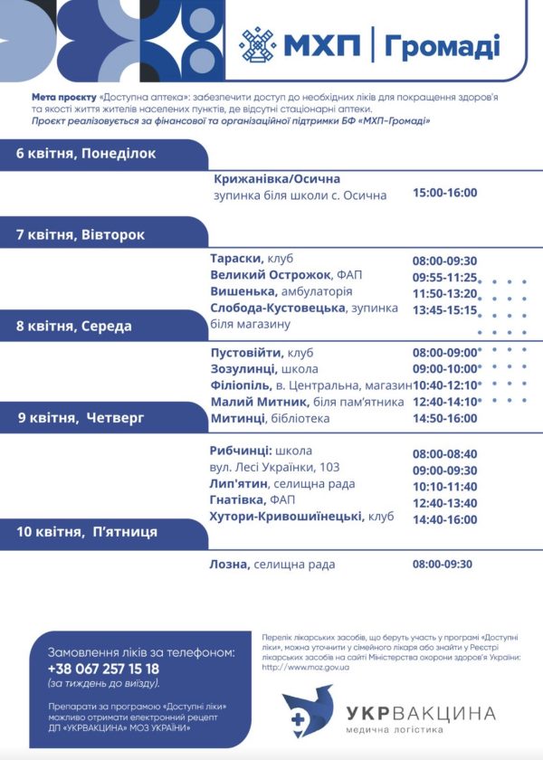 ✅ 06 квітня 2026 року ДП «Укрвакцина» МОЗ України спільно з всеукраїнським благодійним фондом «МХП – Громаді» продовжує роботу мобільного аптечного пункту на території Уланівської територіальної громади Хмільницького району Вінницької області.