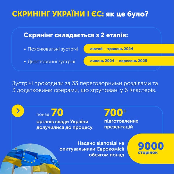 Опубліковано 01.10.2025 о 14:59Україна завершила масштабний процес двостороннього скринінгу з ЄС